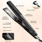 Onze stijltang met keramische platen glijdt soepel door uw haar, waardoor het zijdezacht en steil wordt in slechts één beweging. De negatieve ionen technologie vermindert statisch haar en zorgt voor een perfecte, glanzende finish. Met de aanpasbare temperatuurstanden kun je de warmte aanpassen aan je haartype, zodat je altijd het beste resultaat behaalt zonder schade. De stoom maakt het haar sneller steil. Daarnaast kunnen bijbehorende verzorgingsproducten maximaal in het haar trekken doordat de hitte de haarschubben opent. De stoomfunctie is eenvoudig te bedienen door een aa/uit schakelaar.