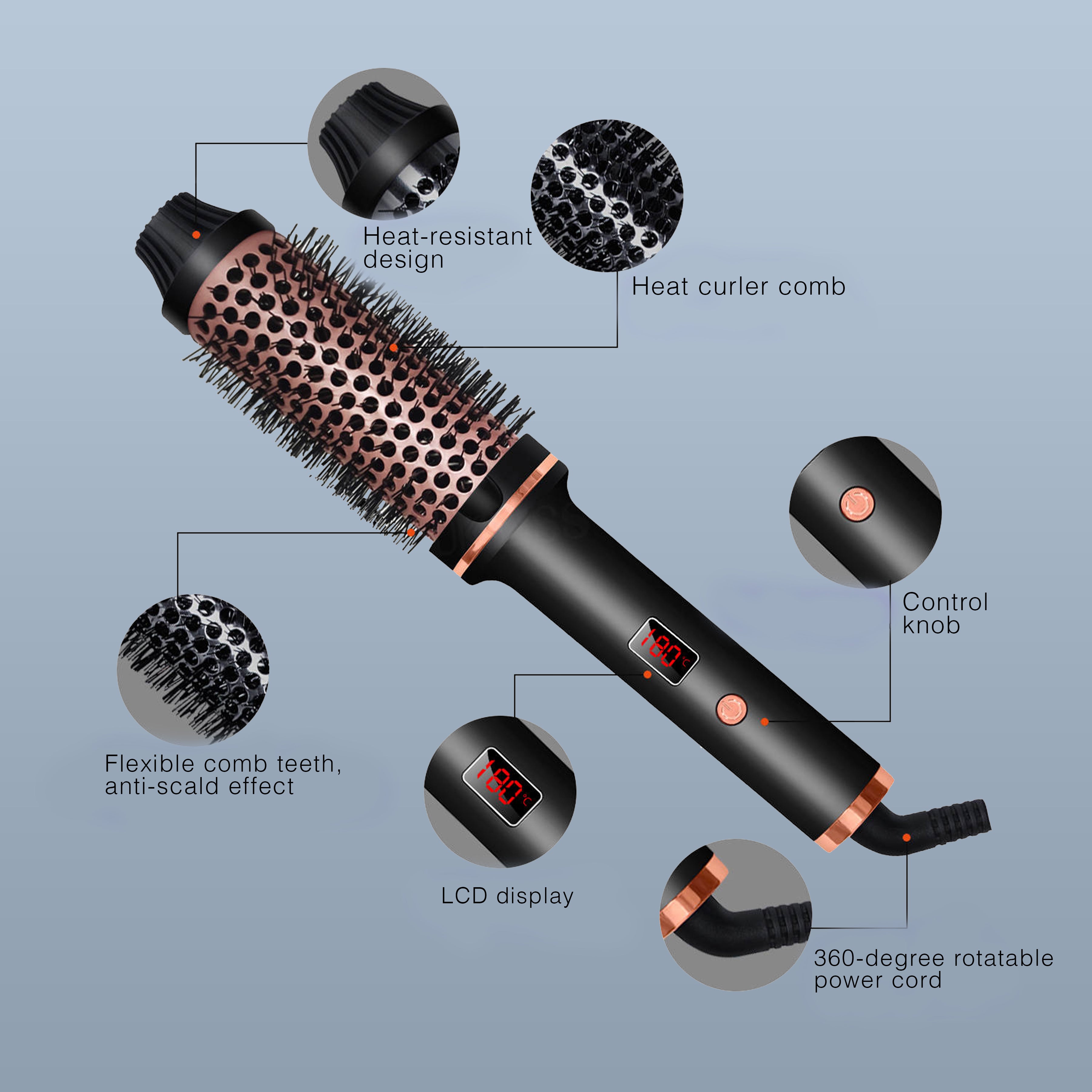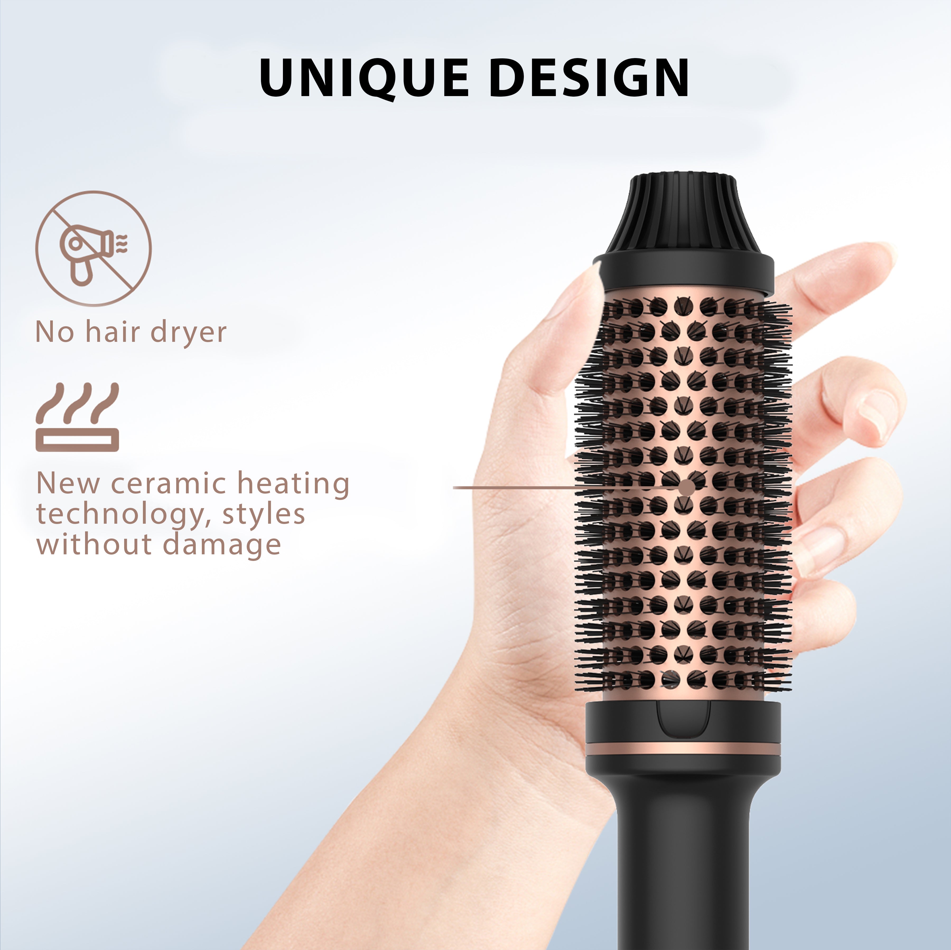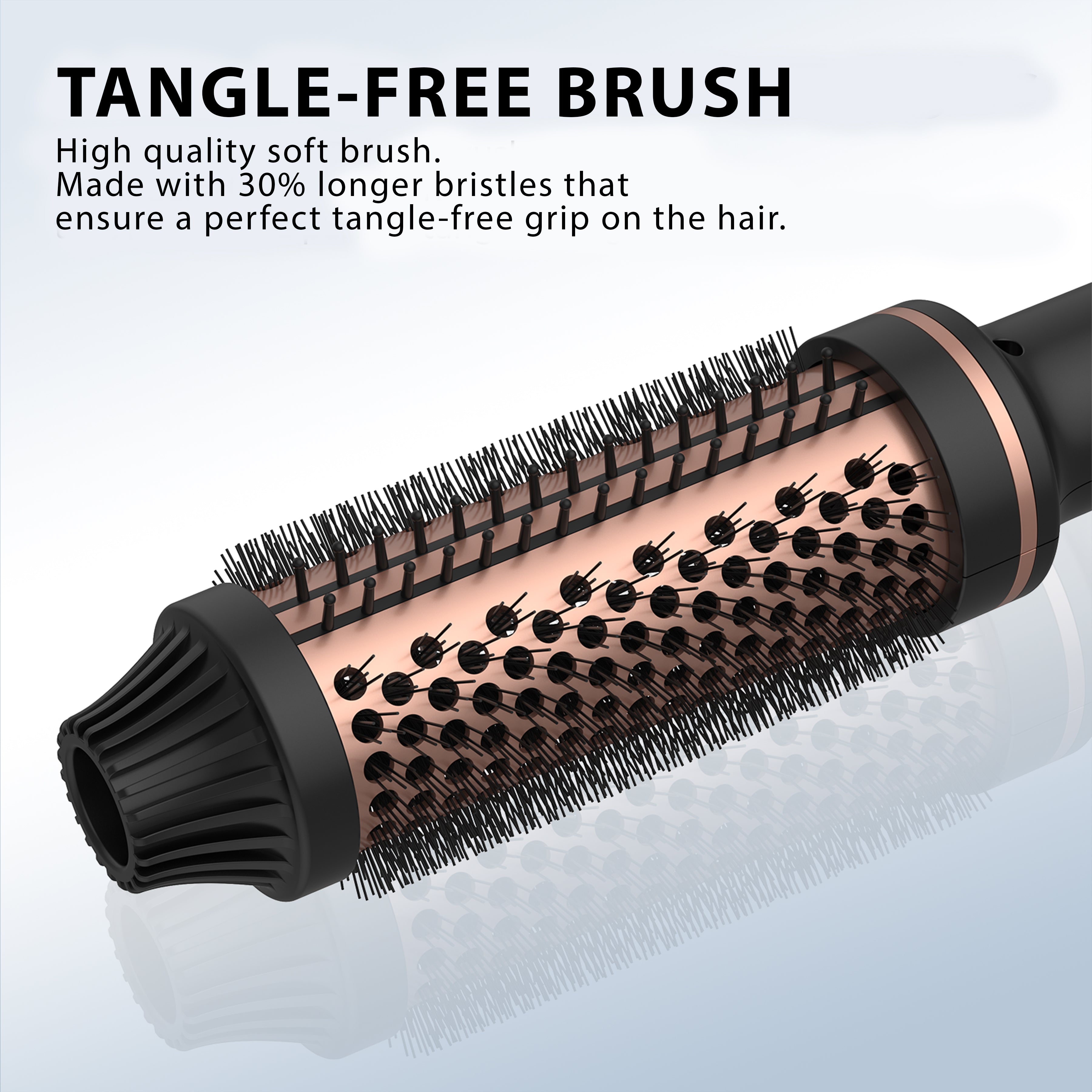 The brush is equipped with an advanced ceramic coating that not only has an elegant appearance, but also offers exceptional durability. This coating has an increased hardness, making it more resistant to wear and damage during use. Thanks to its excellent heat conductivity, the ceramic coating ensures even heat distribution, which contributes to more effective and even hair styling.