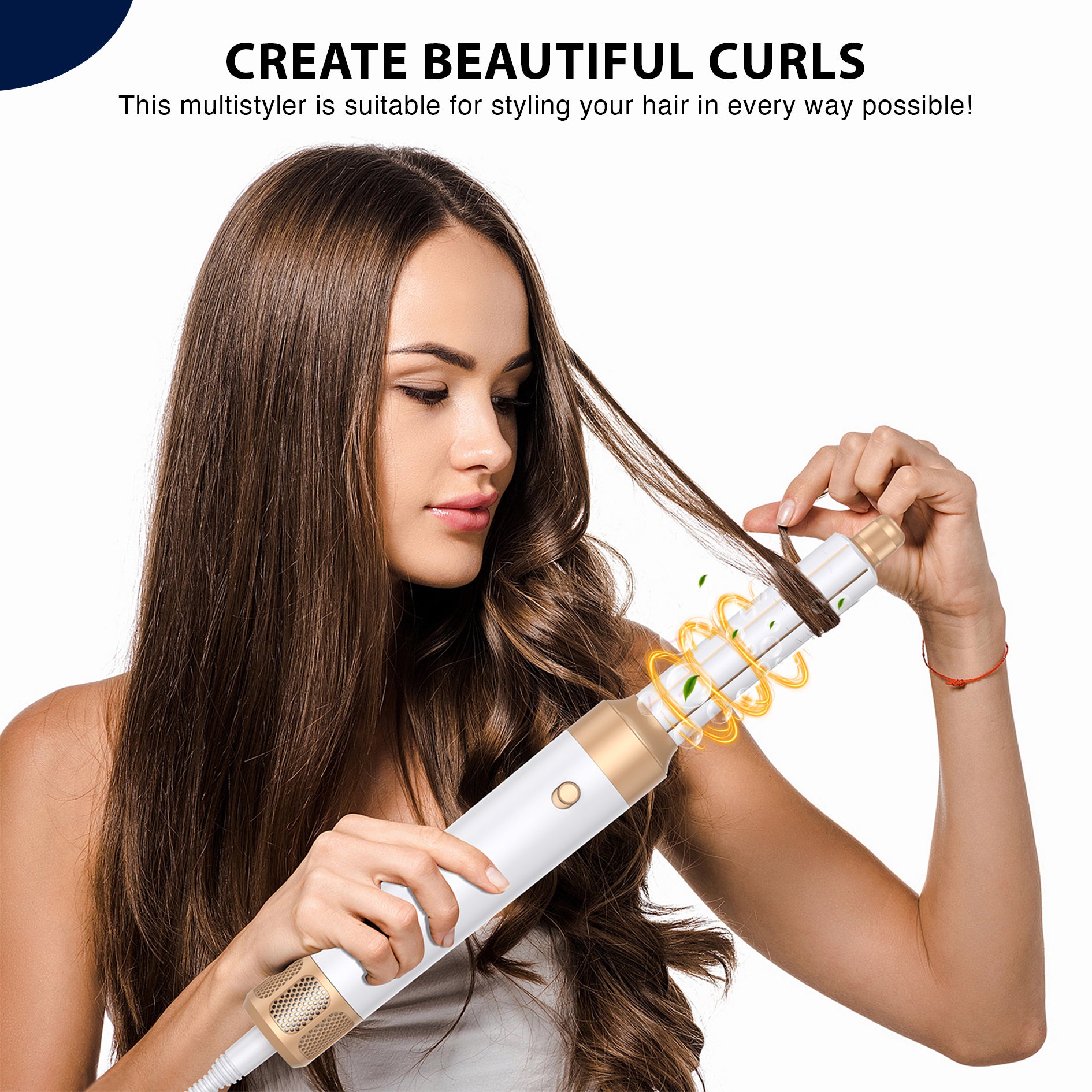7-IN-1 VERSATILITY: With seven unique attachments including two curlers, a diffuser, a styling brush, a blow dryer, a blow-dry brush and an air compressor, the Golden Goods Multistyler offers unparalleled versatility for all your styling needs.