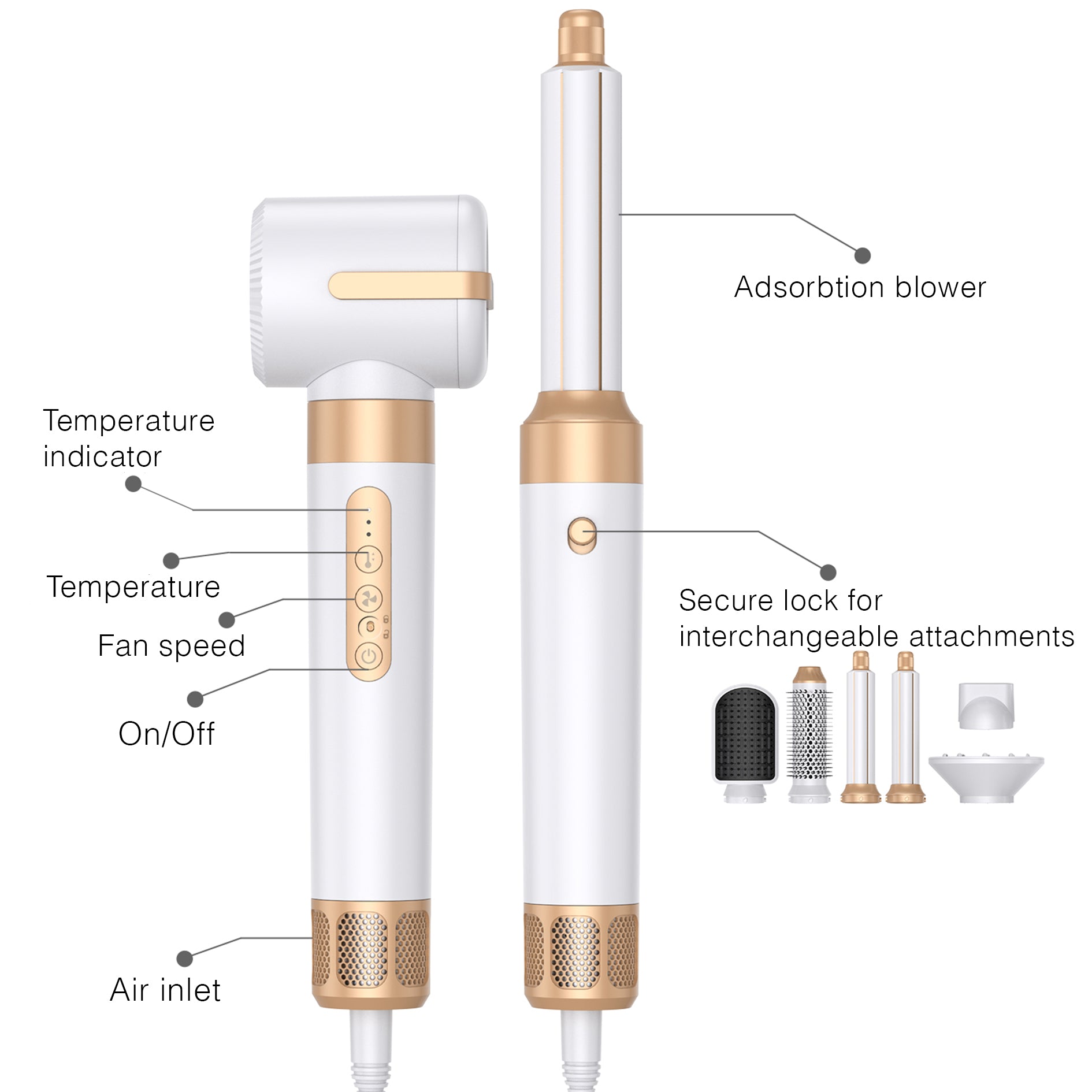 7 in 1 Beautiful Styling with the Golden Goods Hairwrap: Create Impressive Looks with 110,000RPM. Be amazed by the versatility of the Golden Goods Multistyler 7-in-1 Hair Dryer. This groundbreaking hair care tool combines seven essential styling functions in one versatile appliance, allowing you to effortlessly create a wide range of stunning looks.
