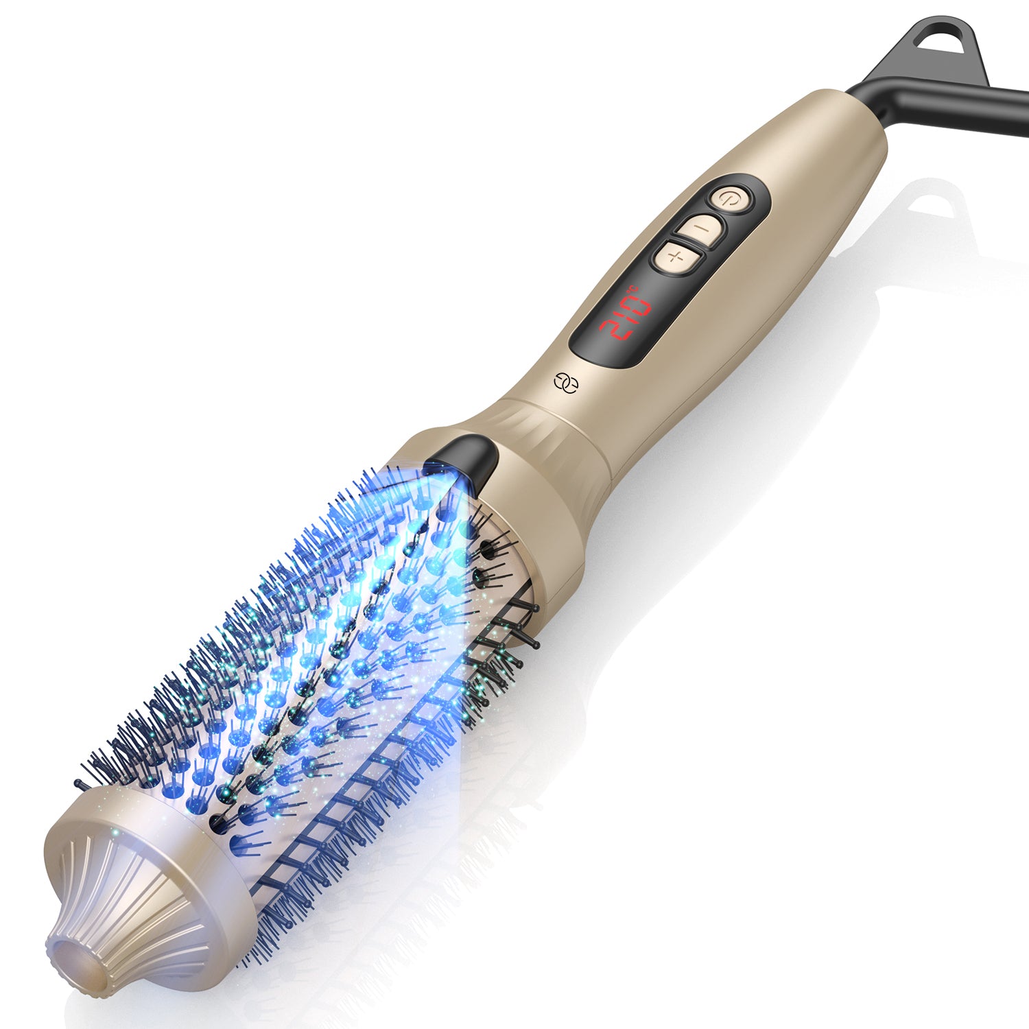 Transform your hair in just 3 minutes with the Golden Goods Magic Brush Pro. Thanks to advanced PTC thermo technology, this luxurious styling brush heats up to the ideal temperature in just 15 seconds. The ultimate successor to the beloved Magic Brush, the Golden Goods Magic Brush Pro offers the perfect combination of style and volume, and ensures a beautiful and professional result. Experience the luxury of a salon look every day with the convenience of styling at home.